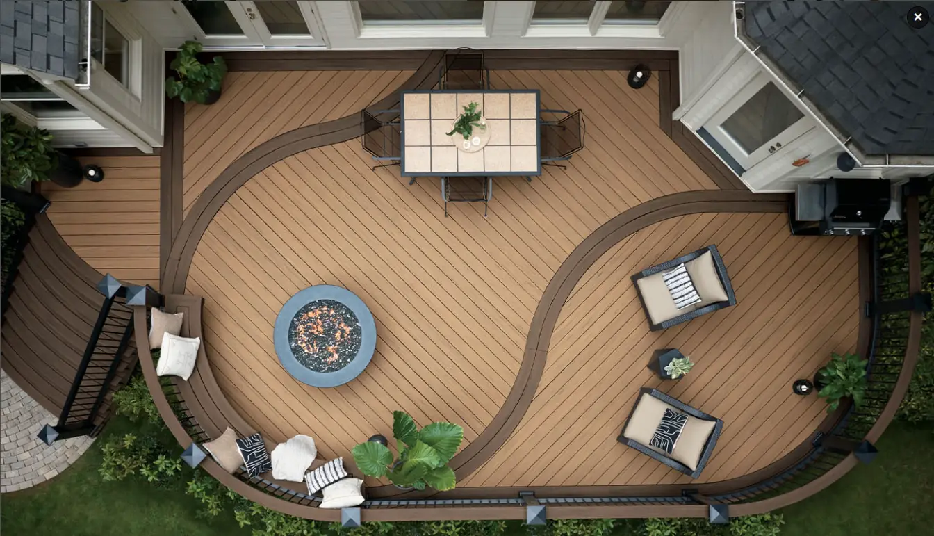 The owners of this home set out to create a welcoming backyard with dual-level deck where they could entertain and unwind in various outdoor spaces. The design, inspired by versatility, brought together different Trex products to define each area.