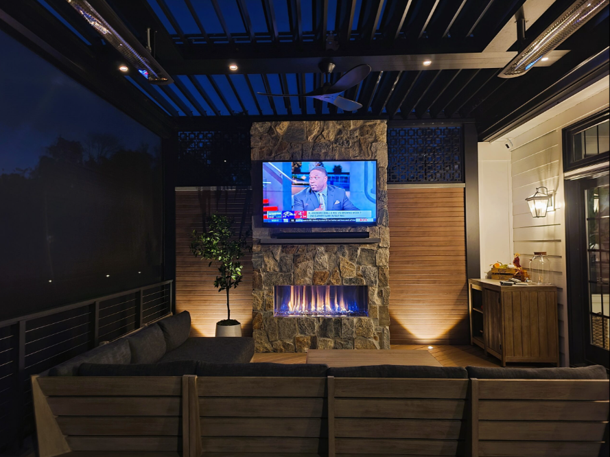 Transform your POOL EXPERIENCE and outdoor space with our premium solutions such as pergolas, various pool deck finishing and entertainment spaces filled with TV, fire features, around pool accessories and more . Each space is meticulously designed to enhance the aesthetics and comfort of your outdoor living area, serving as a stylish focal point. Customize your outdoor space with optional features such as built-in fans, heating systems, integrated speakers, and outdoor TV setups to create the ultimate outdoor entertainment experience. Explore our range of privacy screens for added privacy and protection. Our customizable designs will transform your outdoor area into an inviting retreat, seamlessly blending beauty with practicality.